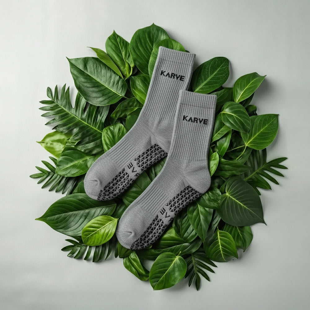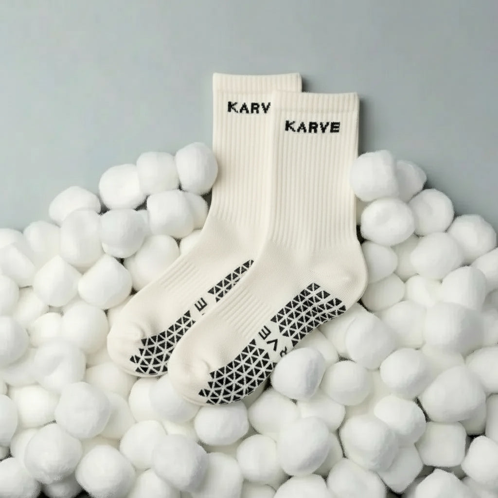 Our socks are made from soft cotton and flexible elastane to maximize comfort, airflow, and mitigate sweat build up.